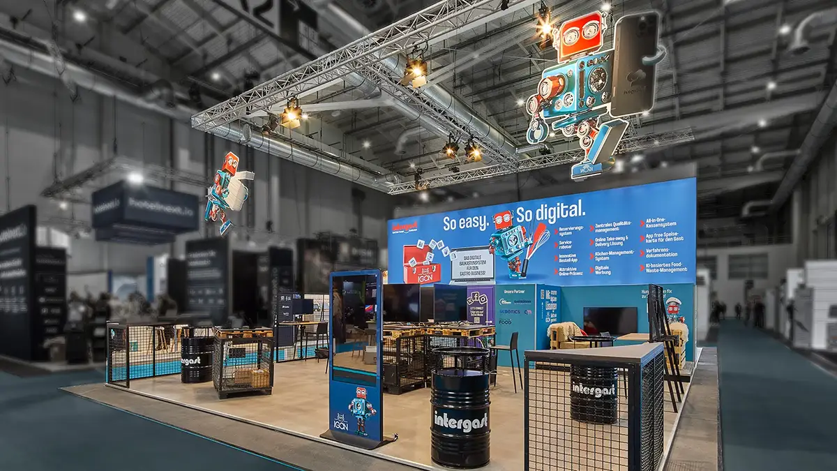 Intergast Food und Eigenmarken präsentieren sich provokativ, frech, frisch und aussagekräftig, mit hochwertigen Food-Bildern. Unsere Idee für das Standkonzept ist einladend, auffällig und leuchtend, um den Standort Intergast Heimat darzustellen und die Marke in Szene zu setzen.